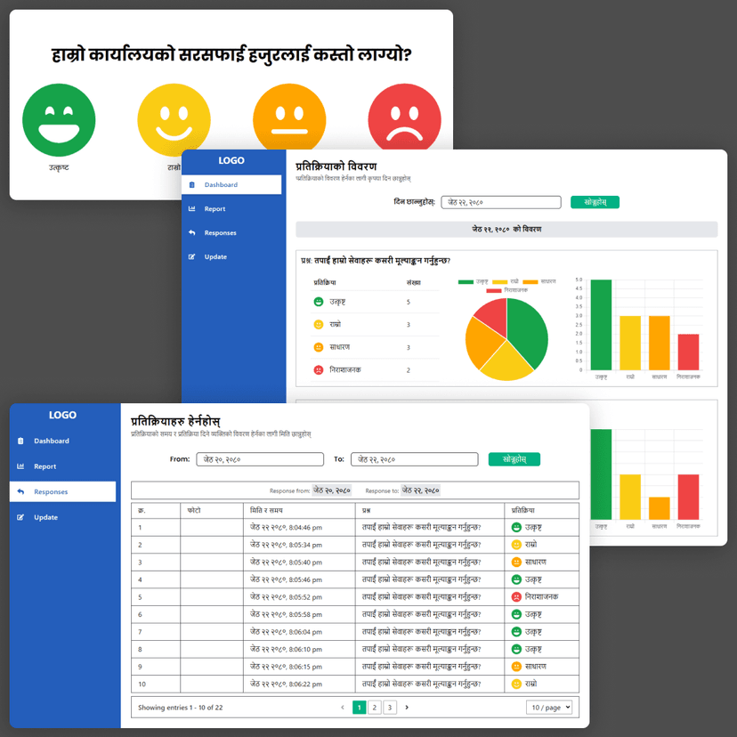 - Automatic recording of image of the person giving the feedback along with date and time.